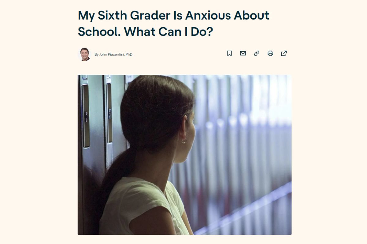 It's very common for kids to have some degree of anxiety about moving to a new school or transitioning from elementary to middle school or middle to high school. This is especially true for kids who have anxiety issues. Starting middle school can trigger fears of getting lost, being late to class, difficulty managing more complicated schedules and being socially isolated.